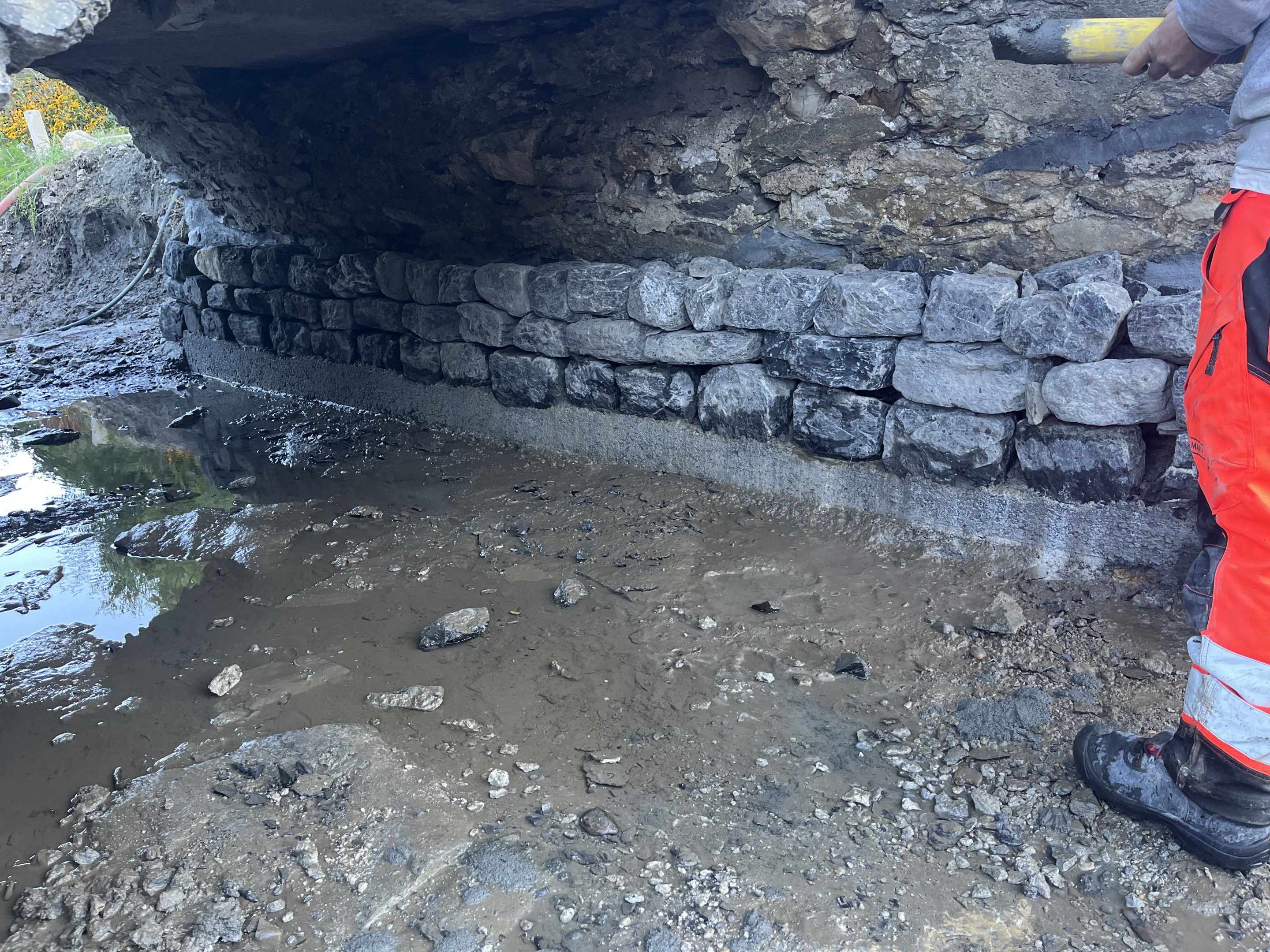 Bachumleitung gemäss Vorschlag Unternehmer, Wasserhaltung, Sanierung Natursteinmauerwerk, Werkleitungsarbeiten, Kordon im Beton, Gestaltungs- und Belagsarbeiten
