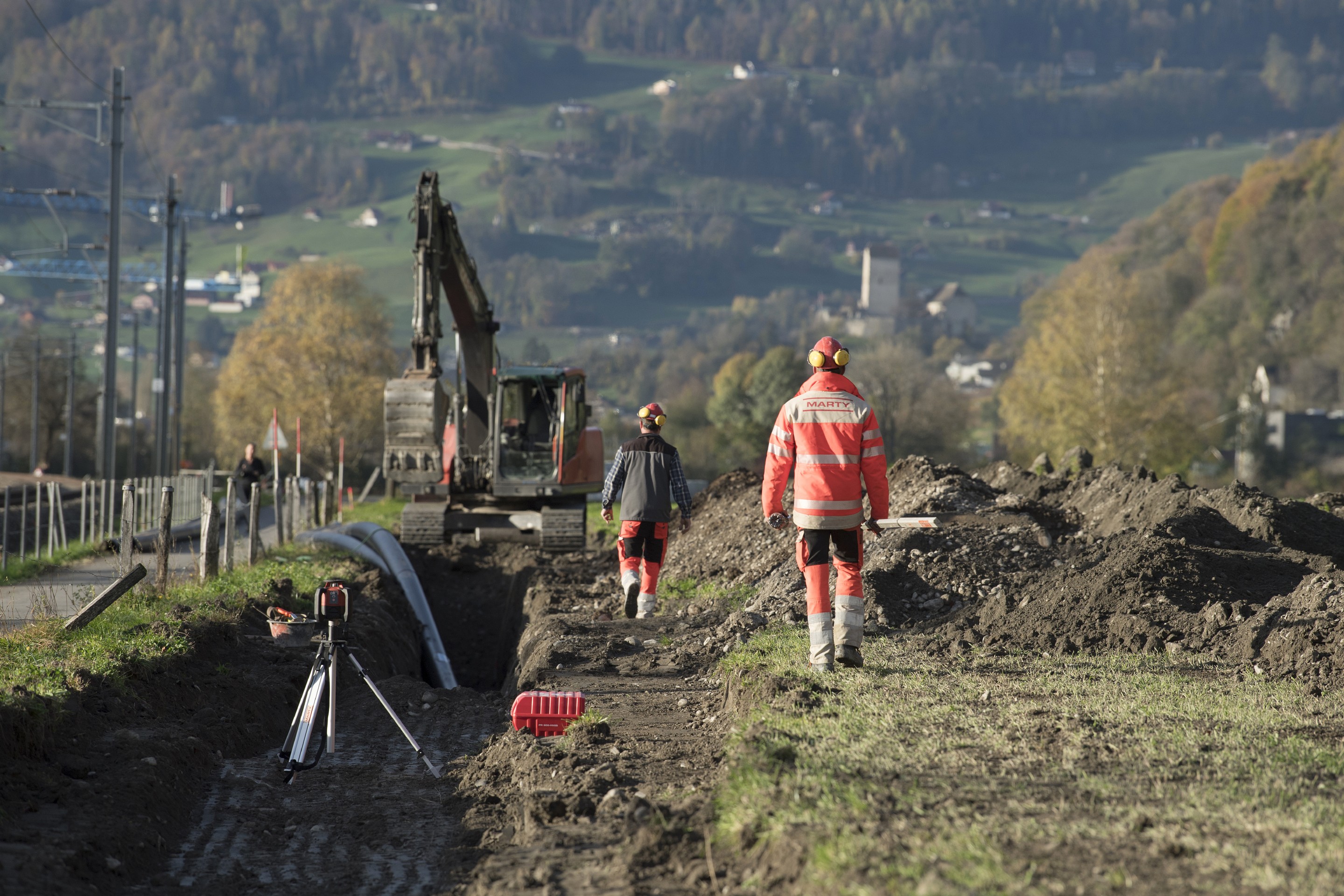 Im Gemeindegebiet von Wartau wurde eine neue Druckleitung verlegt, um das Abwasser der Gemeinde an die modern ausgebaute Kläranlage ARA Sargans zu leiten. Gleichzeitig wurden in diesem Zusammenhang rund 21km Kabelschutzrohre eingebaut und drei Pressbohrungen mit Längen zwischen 20 und 40m ausgeführt. Die Umsetzung erfolgte in zwei Etappen mit geplanter Vollinbetriebnahme im Dezember 2023.