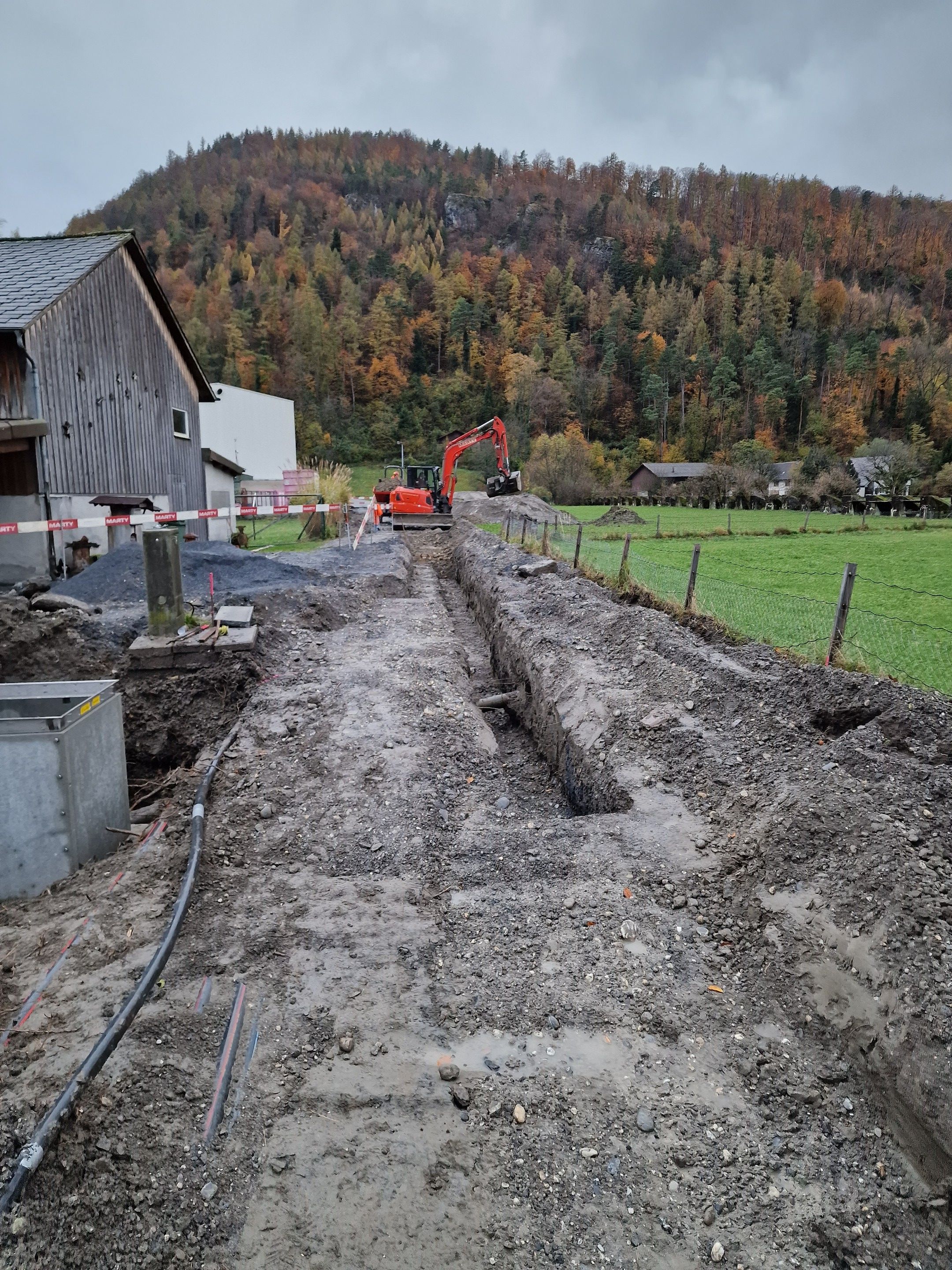 Im Auftrag der Politischen Gemeinde Wartau wurde der Vilnasweg im Ortsteil Weite umfassend saniert. Die bestehende Erschliessungsstrasse zwischen der Kantonsstrasse und dem Abzweiger Käshof wurde auf einer Länge von rund 270m erneuert und auf eine einheitliche Fahrbahnbreite von 4.70m ausgebaut. Parallel dazu wurden sämtliche Werkleitungen – Wasser, Abwasser, Strom, Gas und Kommunikation – modernisiert und neu geordnet. Das Projekt verbindet verkehrstechnische Verbesserungen mit einer zukunftsgerichteten Infrastrukturplanung.
