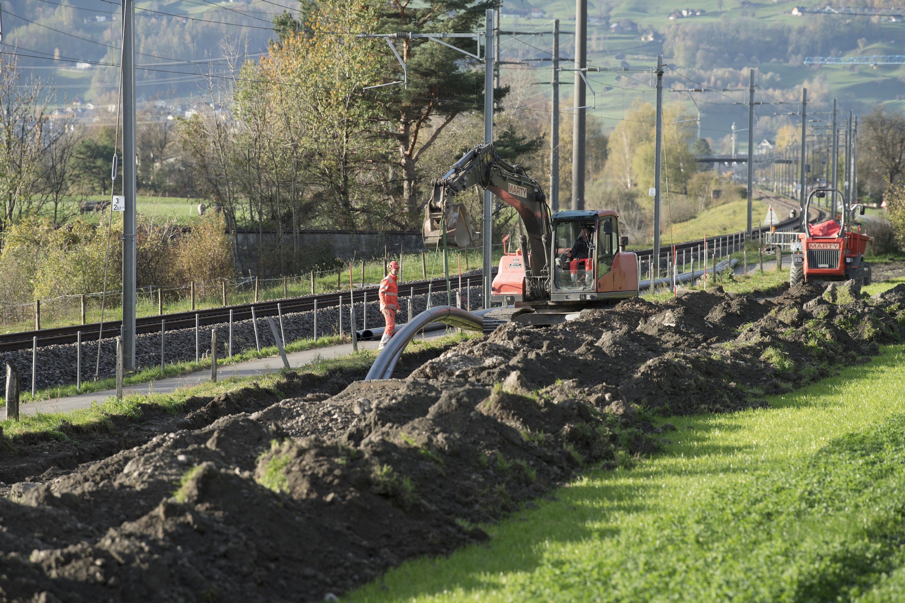 Im Gemeindegebiet von Wartau wurde eine neue Druckleitung verlegt, um das Abwasser der Gemeinde an die modern ausgebaute Kläranlage ARA Sargans zu leiten. Gleichzeitig wurden in diesem Zusammenhang rund 21km Kabelschutzrohre eingebaut und drei Pressbohrungen mit Längen zwischen 20 und 40m ausgeführt. Die Umsetzung erfolgte in zwei Etappen mit geplanter Vollinbetriebnahme im Dezember 2023.
