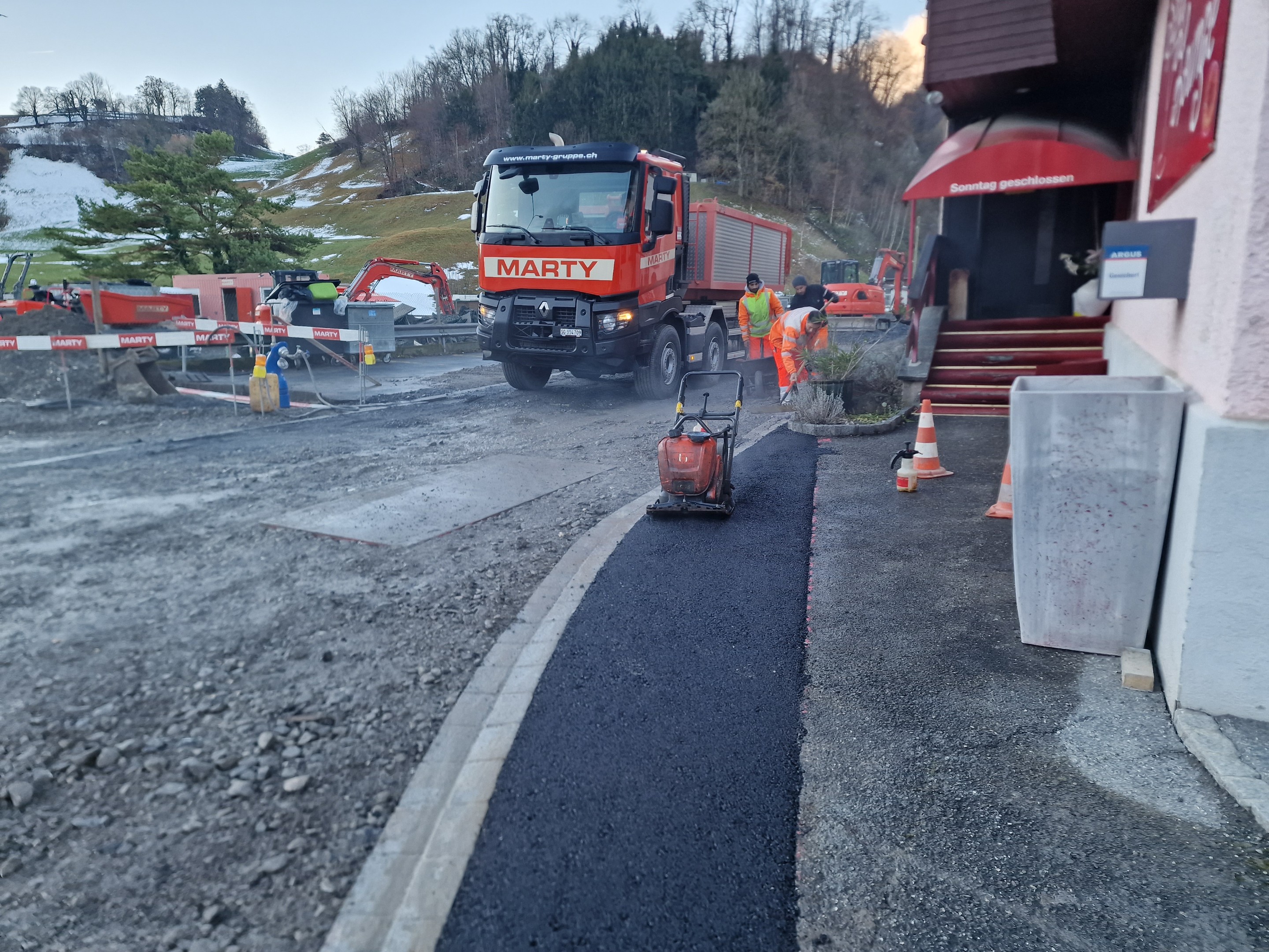 Tiefbau und Werkleitungen: Aushubarbeiten ca. 1’280m³, Fundationsschicht ca. 1'060m³, Neubau der Werkleitungen für Wasser, Elektrizität, Erdgas, Kommunikation und Entwässerung, Kanalisation ca. 65m.